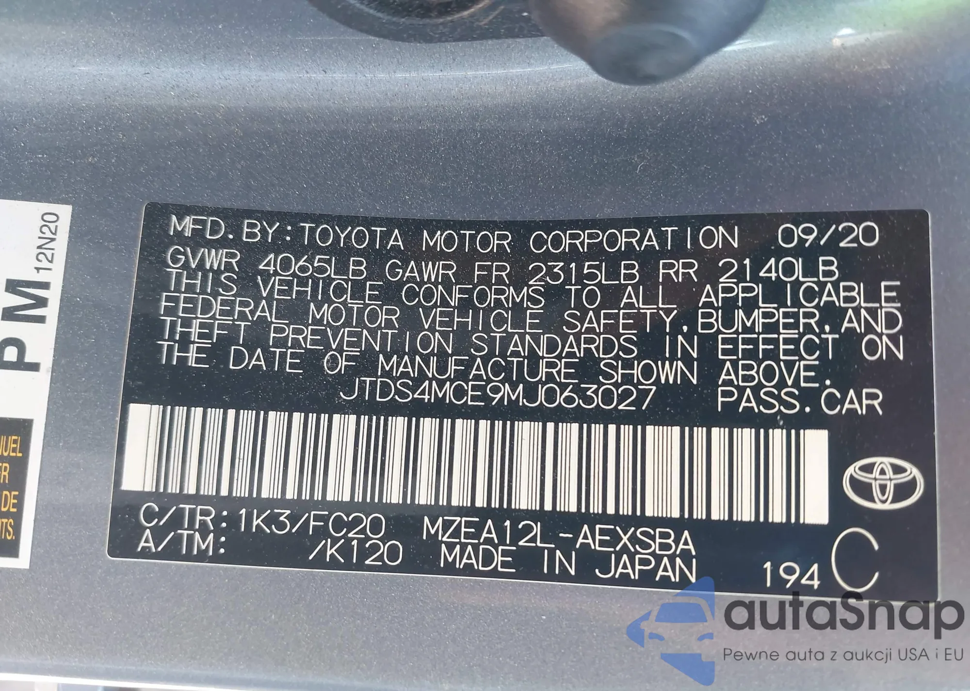 VIN: JTDS4MCE9MJ063027