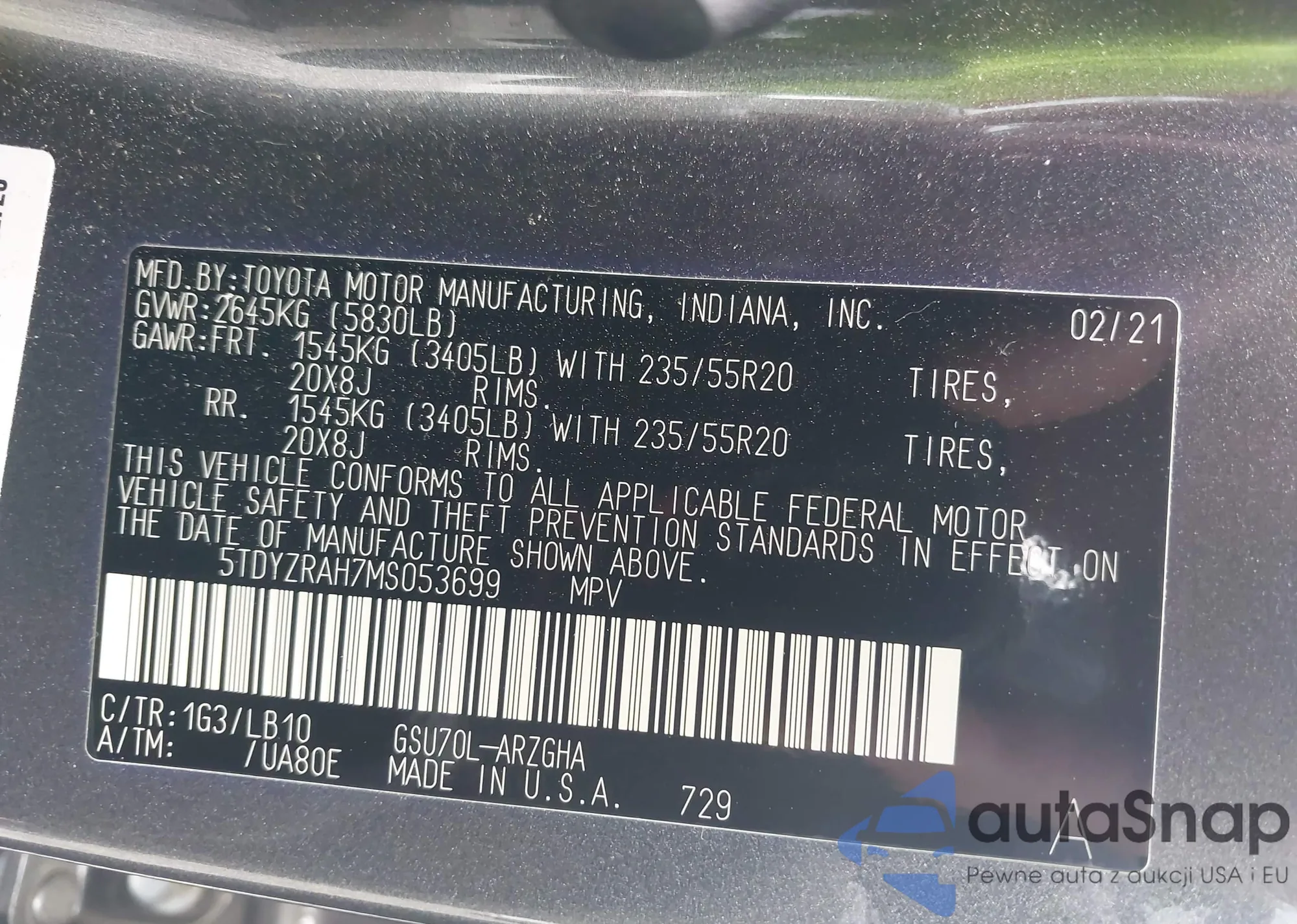 VIN: 5TDYZRAH7MS053699