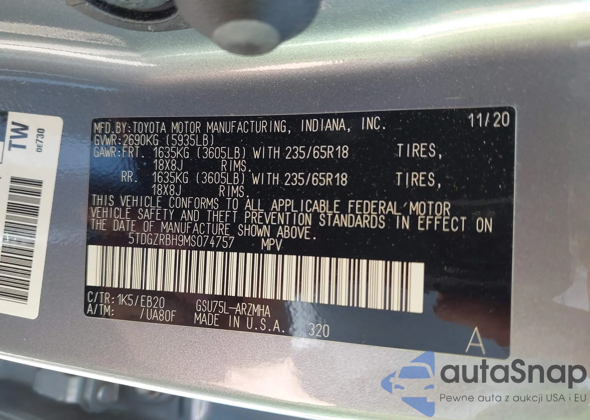 VIN: 5TDGZRBH9MS074757