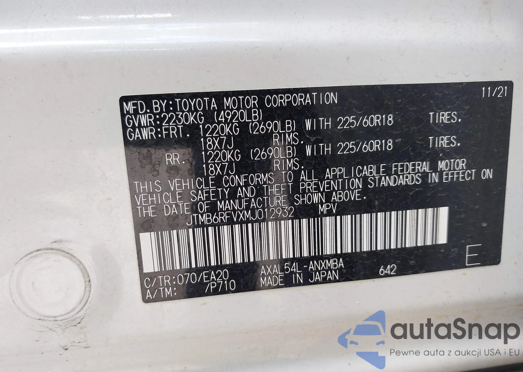 VIN: JTMB6RFVXMJ012932
