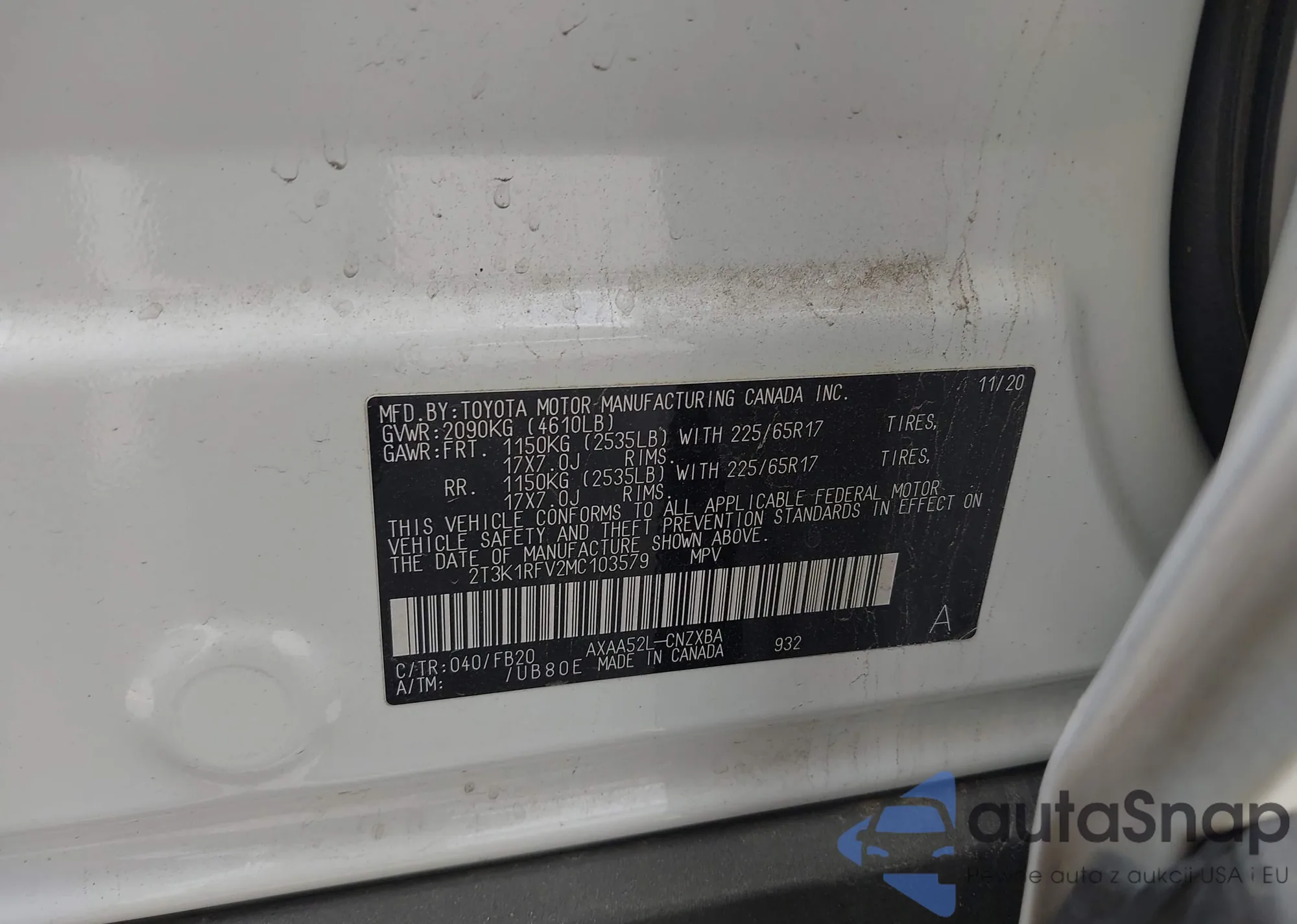 VIN: 2T3K1RFV2MC103579