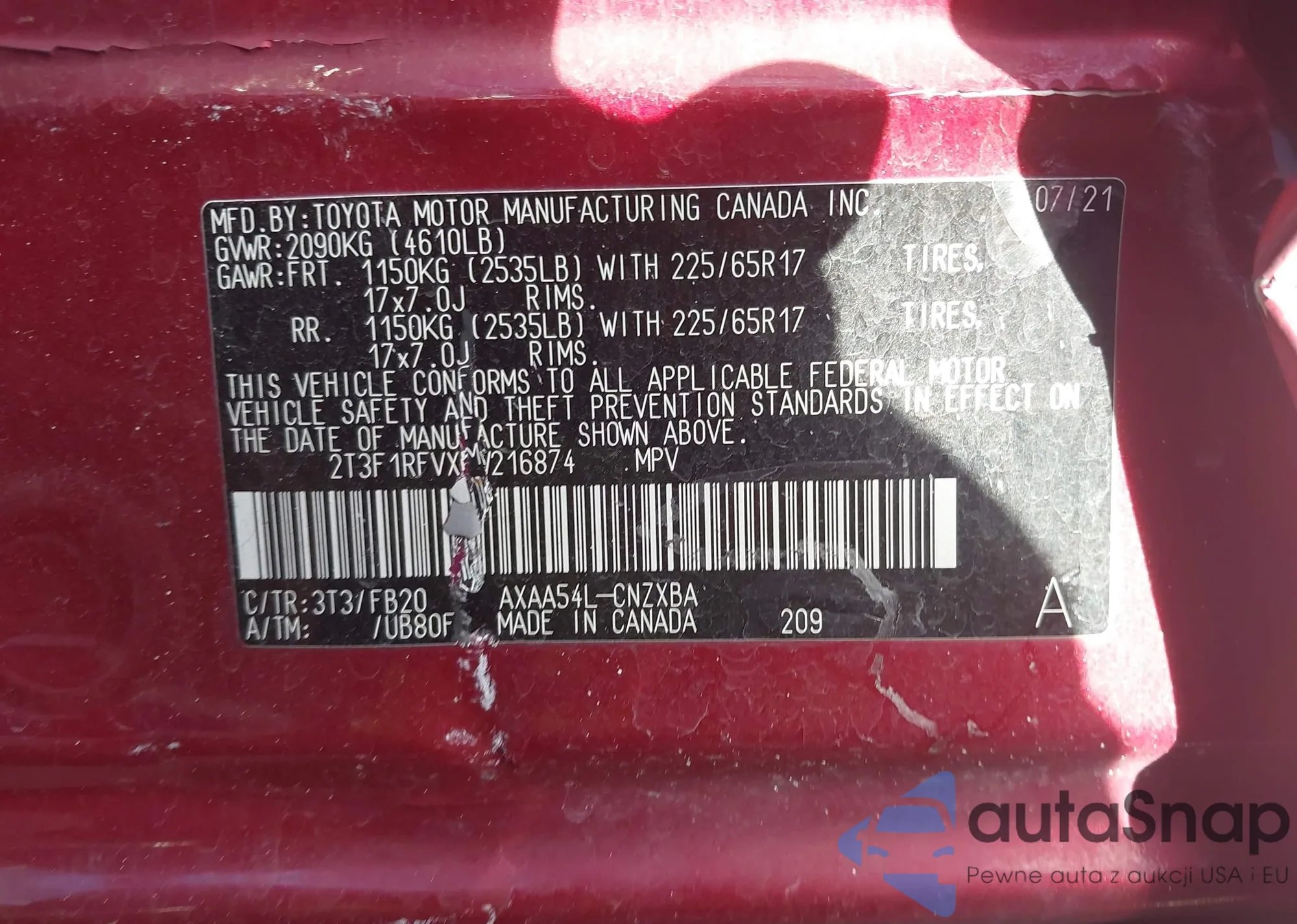 VIN: 2T3F1RFVXMW216874