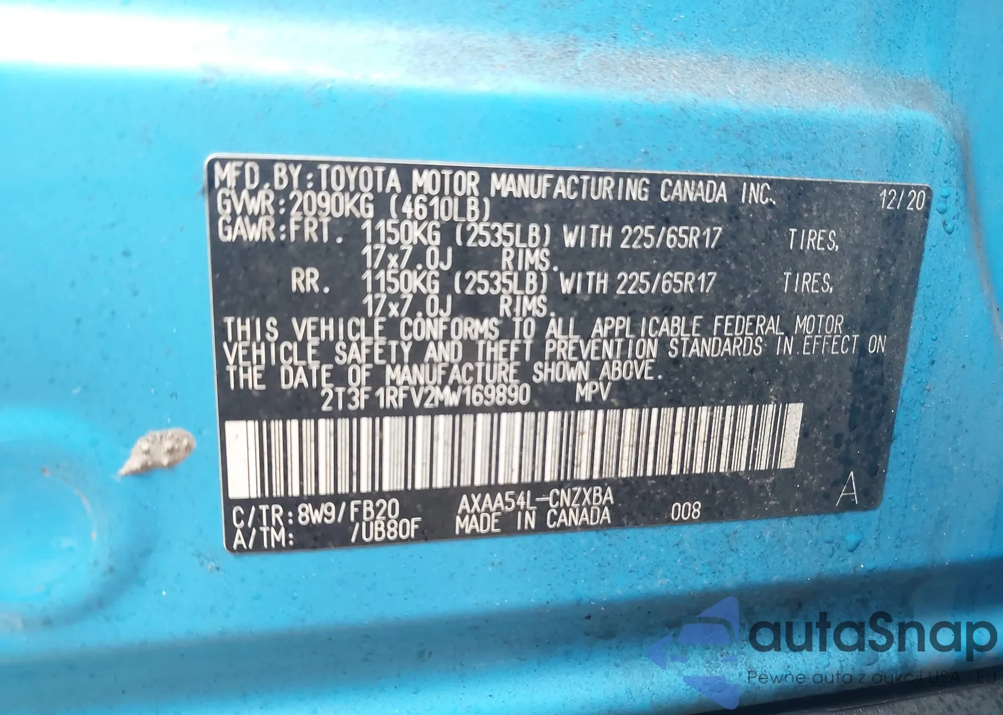 The car Toyota RAV 4 2021 (VIN 2T3F1RFV2MW169890) has not been auctioned before. The documents are clean, and the mileage matches or is below the market average. Sold by an insurance company – we recommend purchase. Delivery to the port will take approx. 6–8 weeks.
