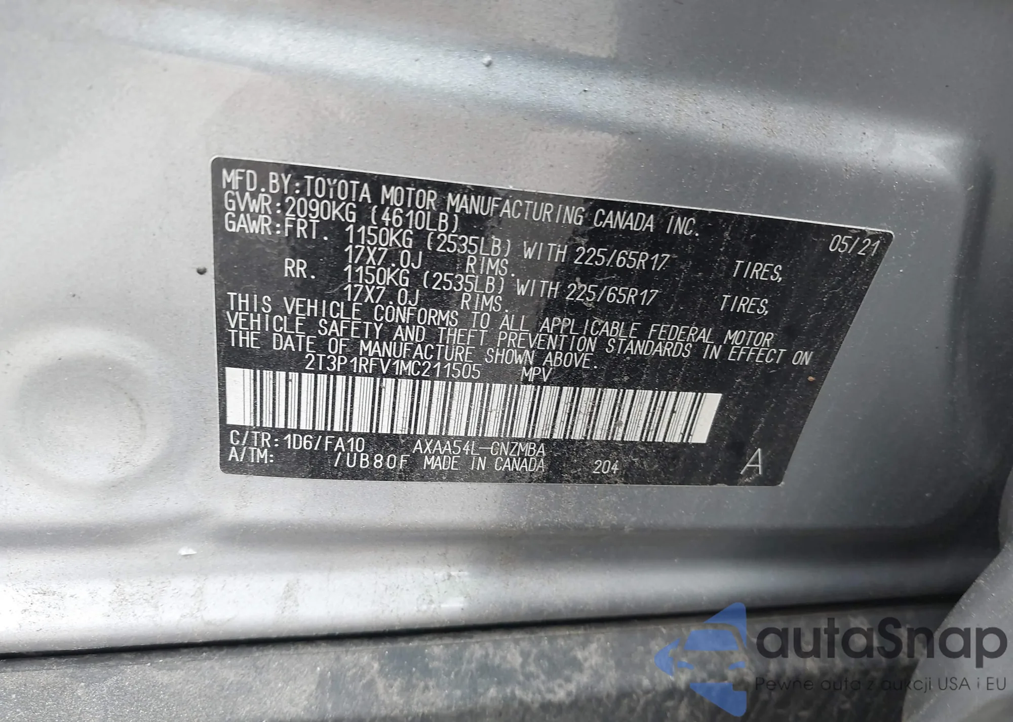 VIN: 2T3P1RFV1MC211505