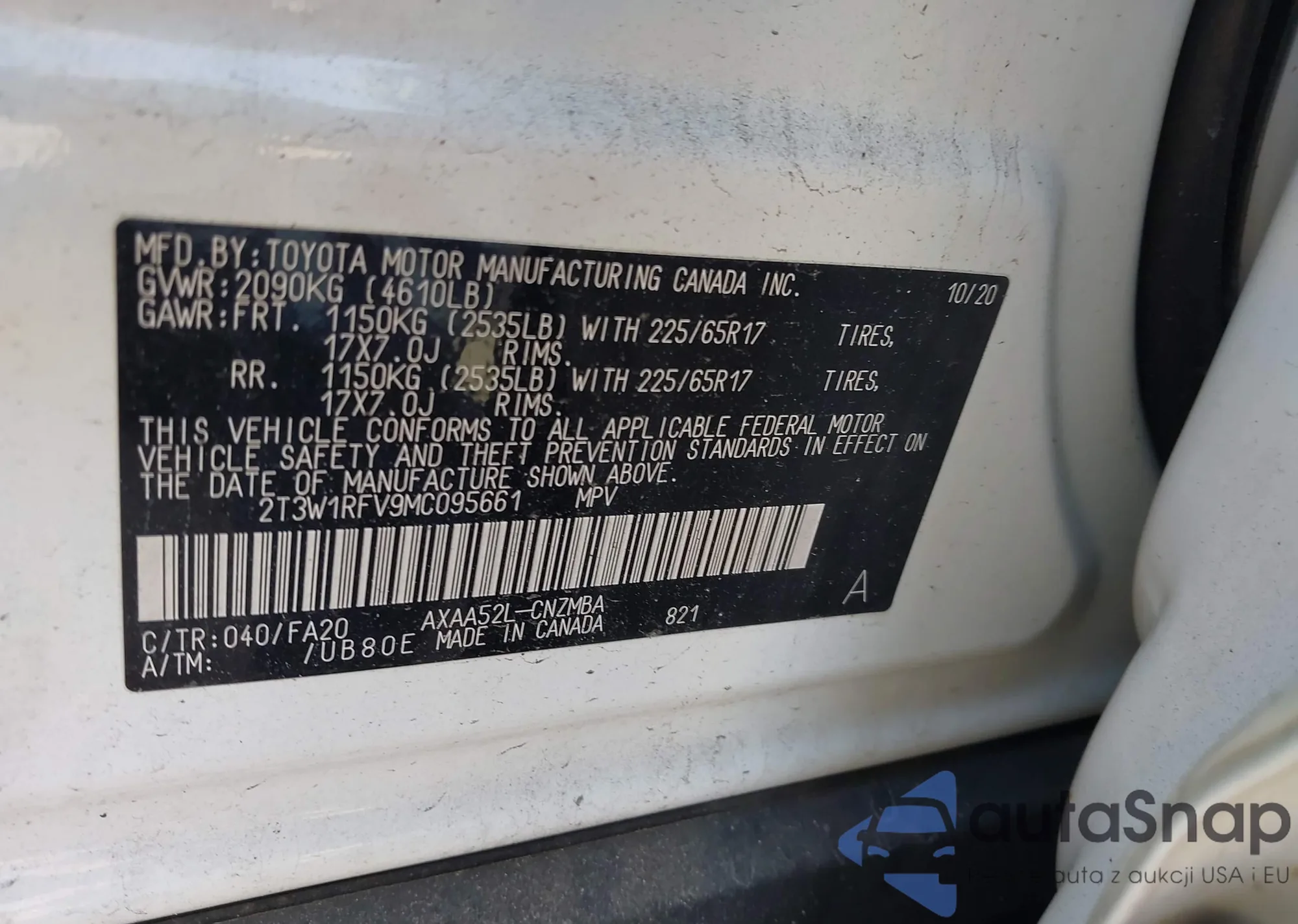 VIN: 2T3W1RFV9MC095661