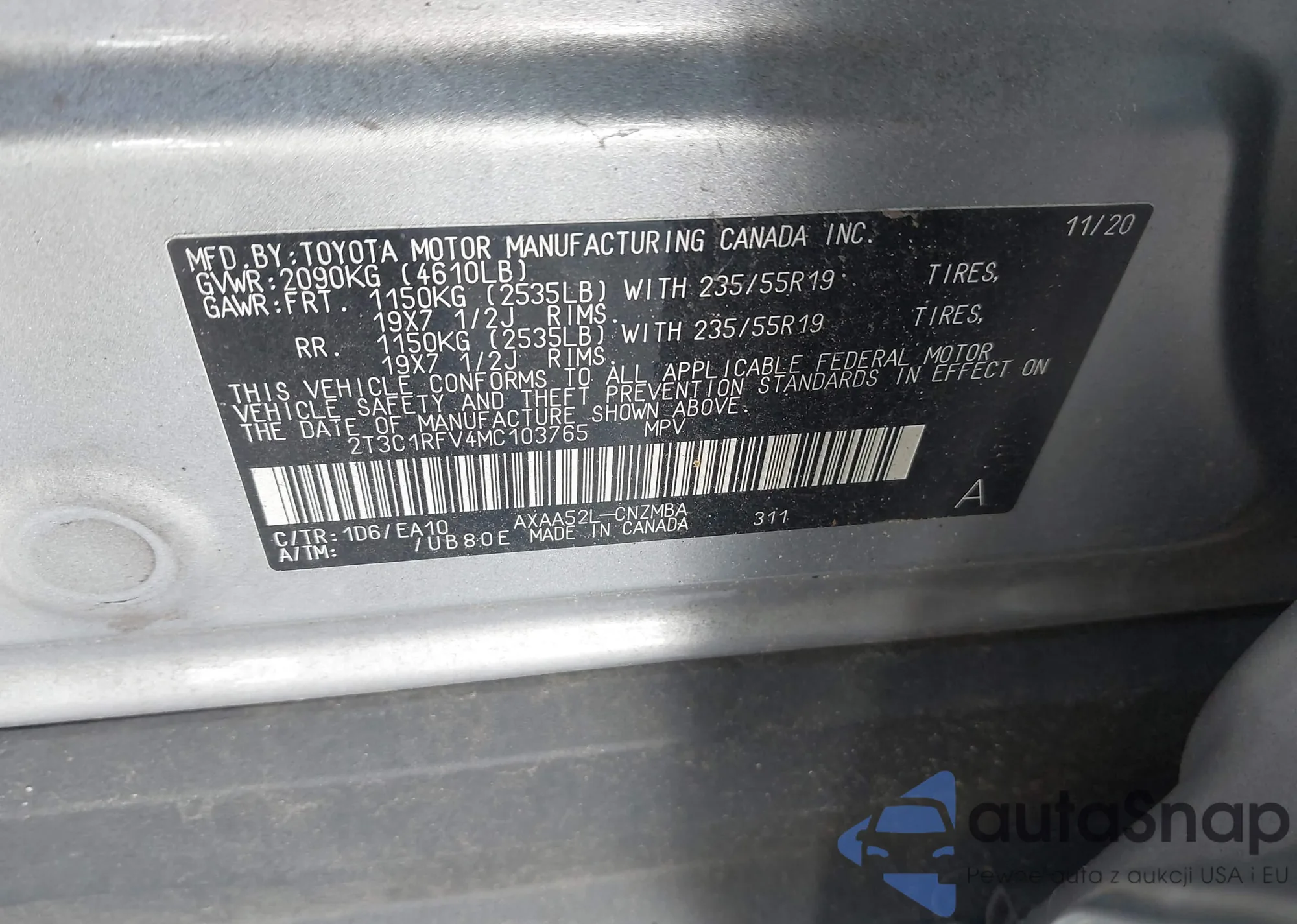 • VIN: 2T3C1RFV4MC103765