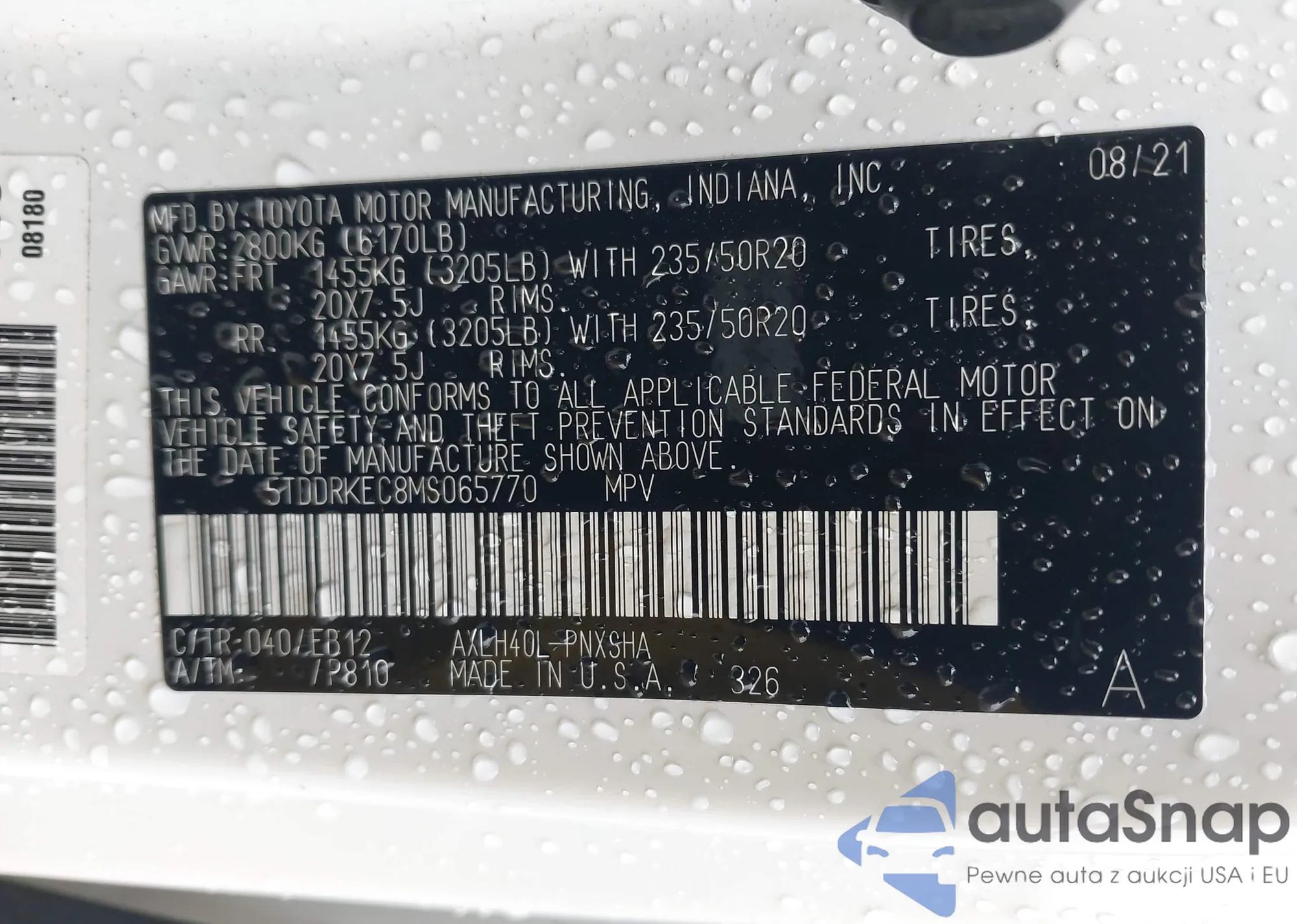 VIN: 5TDDRKEC8MS065770