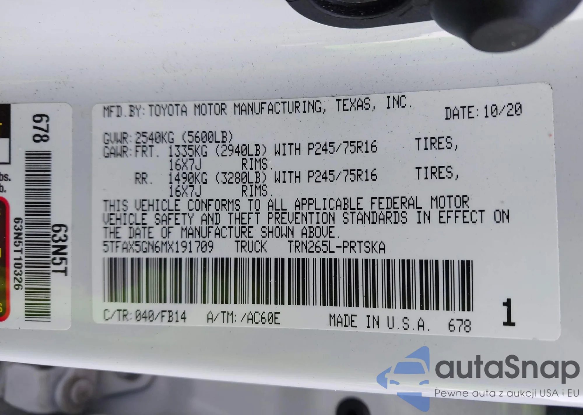 VIN: 5TFAX5GN6MX191709