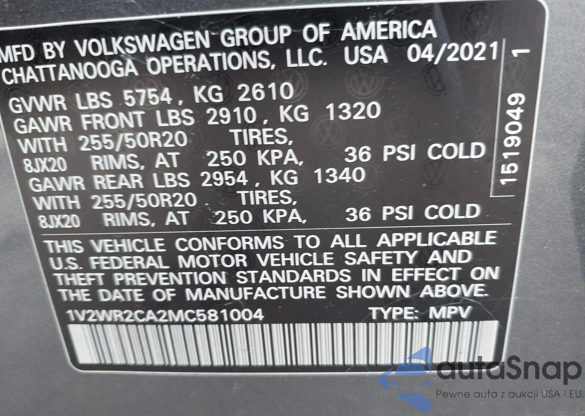 VIN: 1V2WR2CA2MC581004