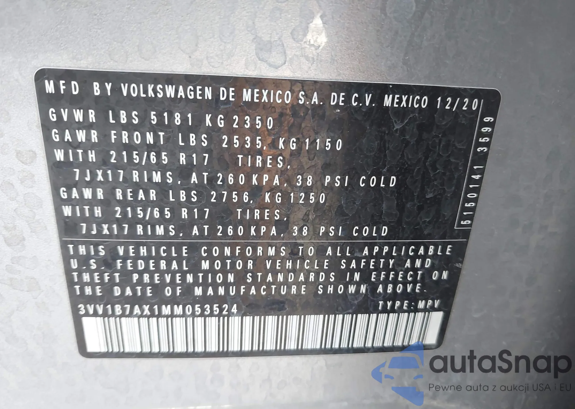 3VV1B7AX1MM053524 IAAI