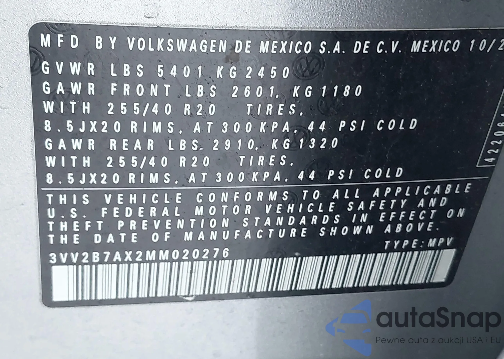 • VIN: 3VV2B7AX2MM020276