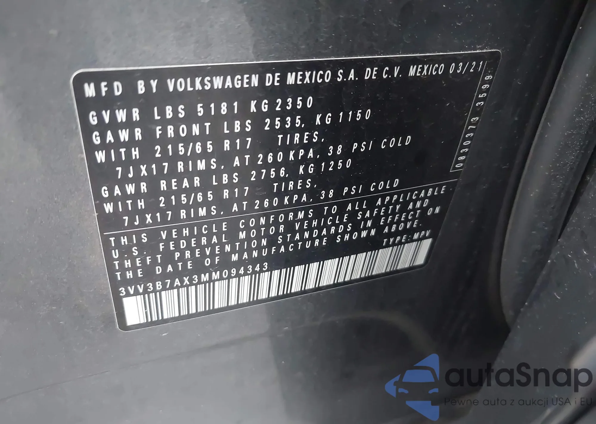 VIN: 3VV3B7AX3MM094343