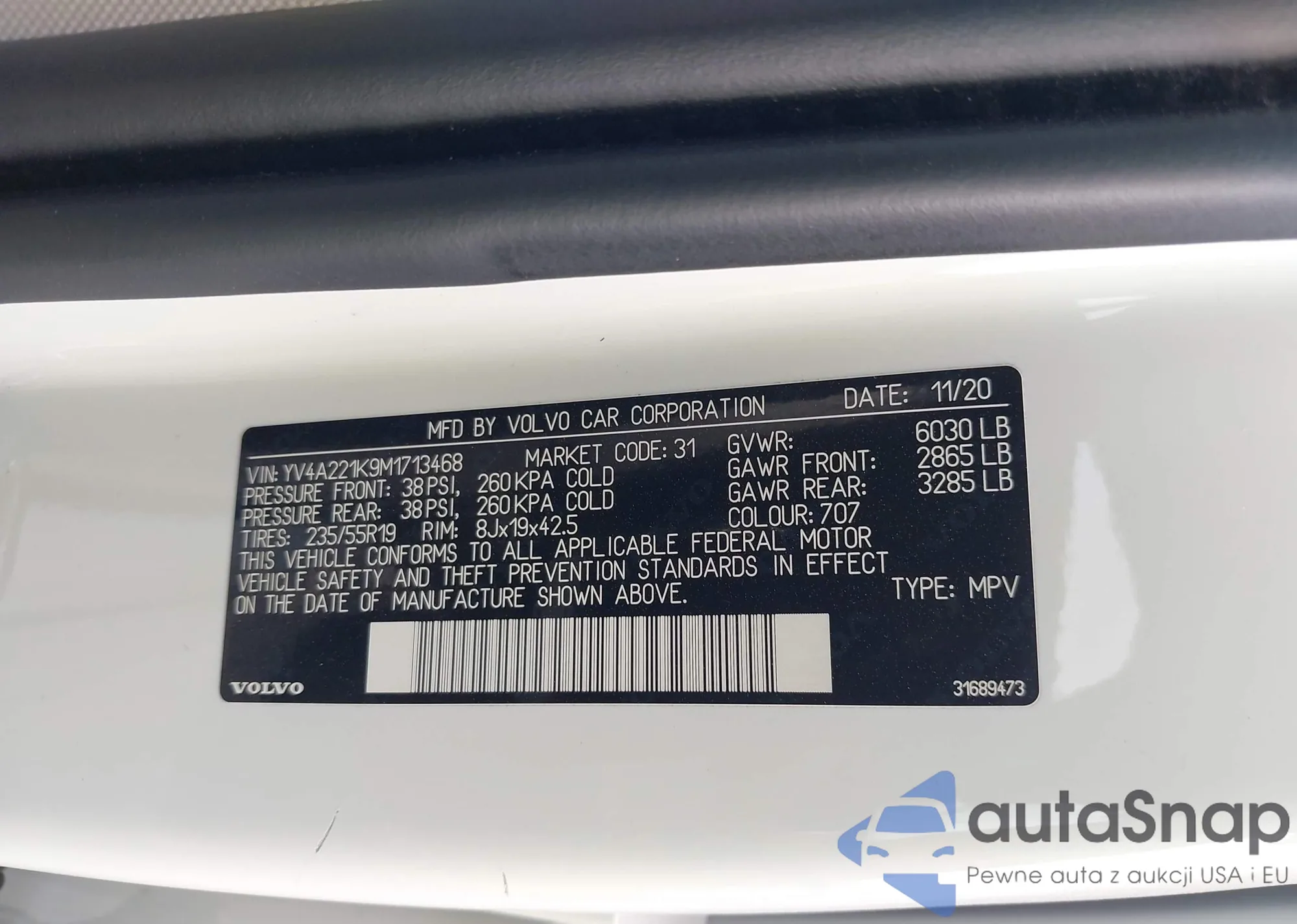 • VIN: YV4A221K9M1713468