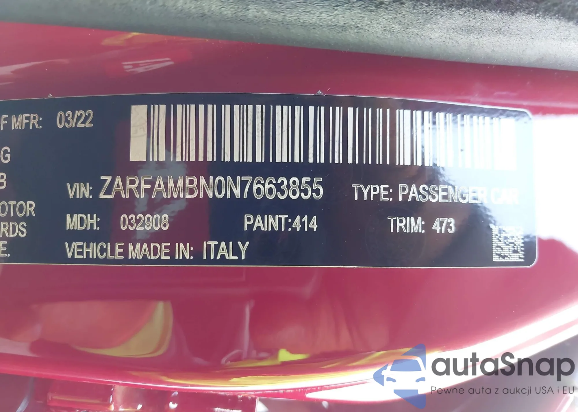 VIN: ZARFAMBN0N7663855