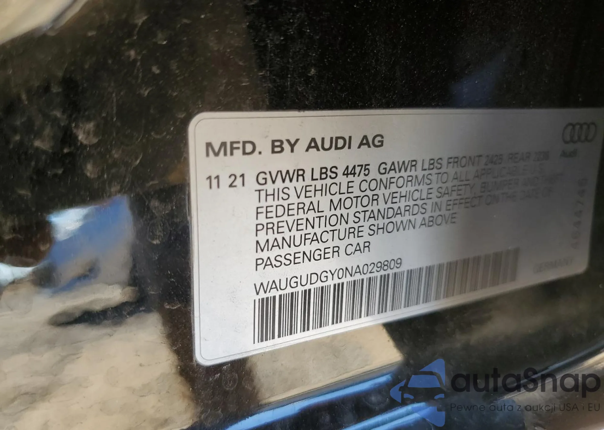 The car Audi A3 2022 (VIN WAUGUDGY0NA029809) has not been auctioned before. The documents are clean, and the mileage matches or is below the market average. Sold by an insurance company – we recommend purchase. Delivery to the port will take approx. 6–8 weeks.