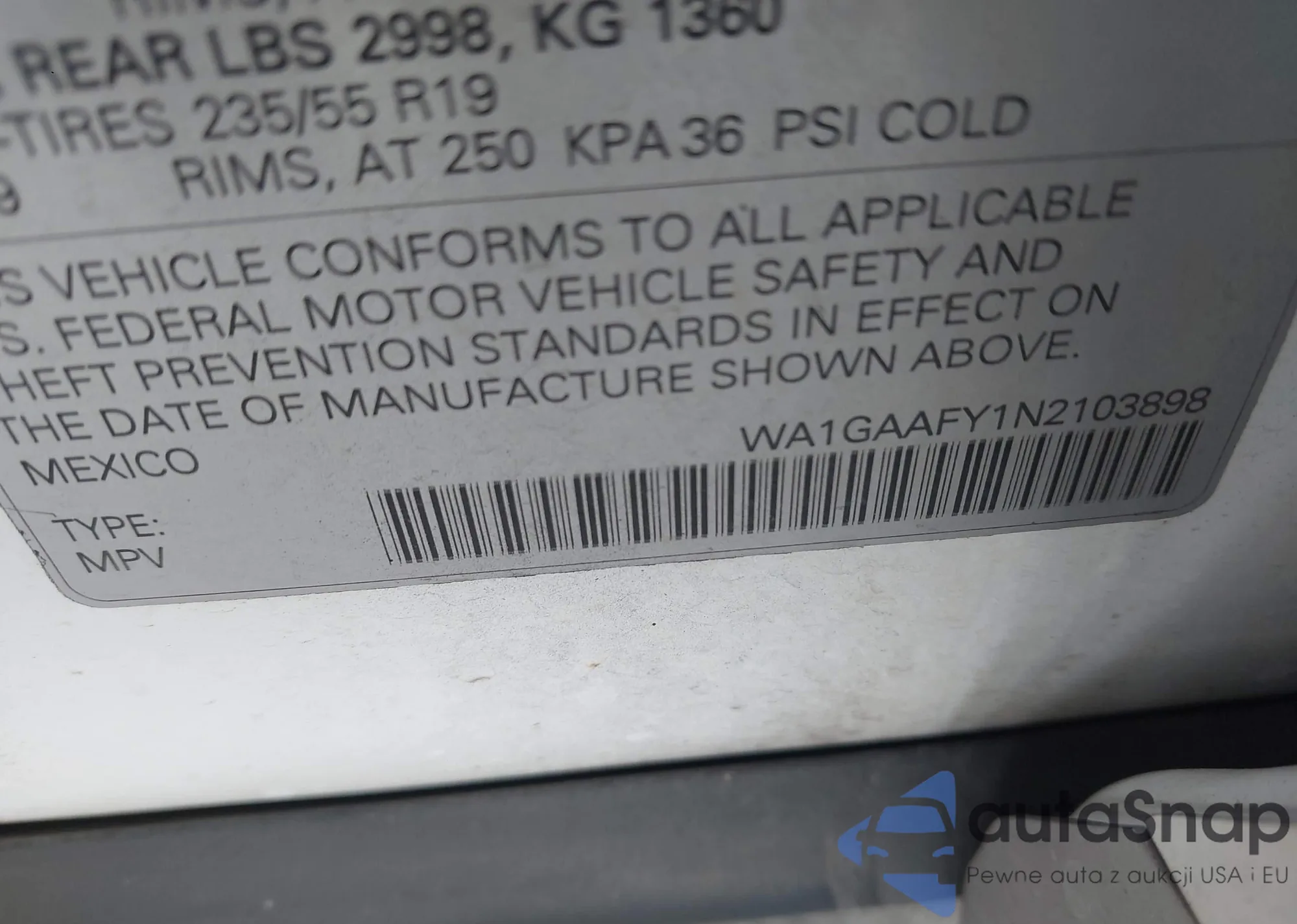 VIN: WA1GAAFY1N2103898