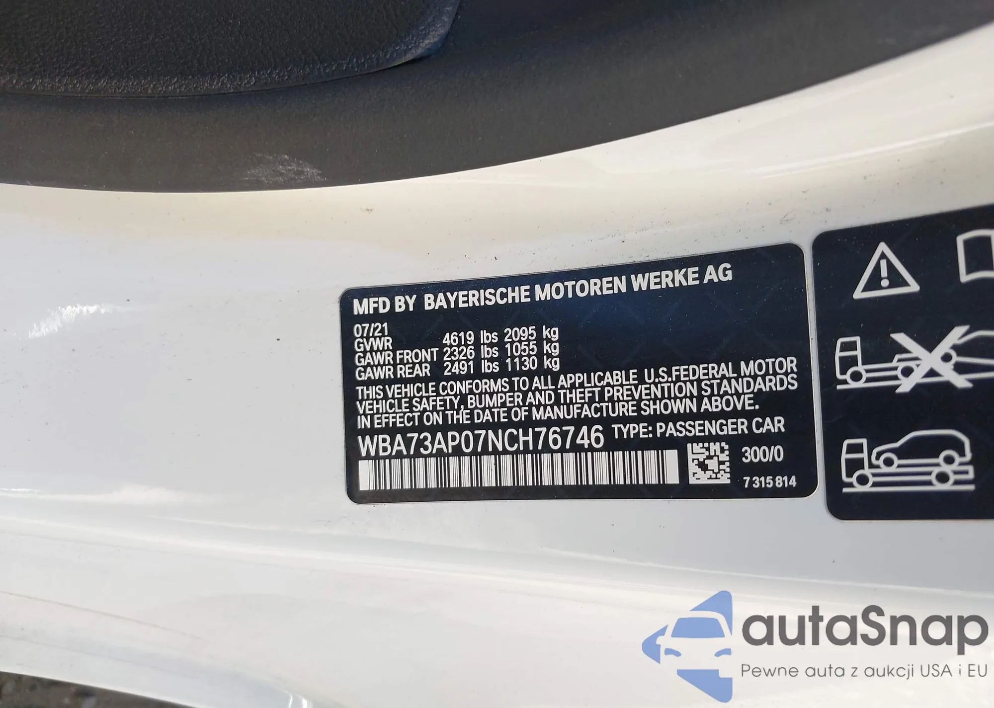 • VIN: WBA73AP07NCH76746