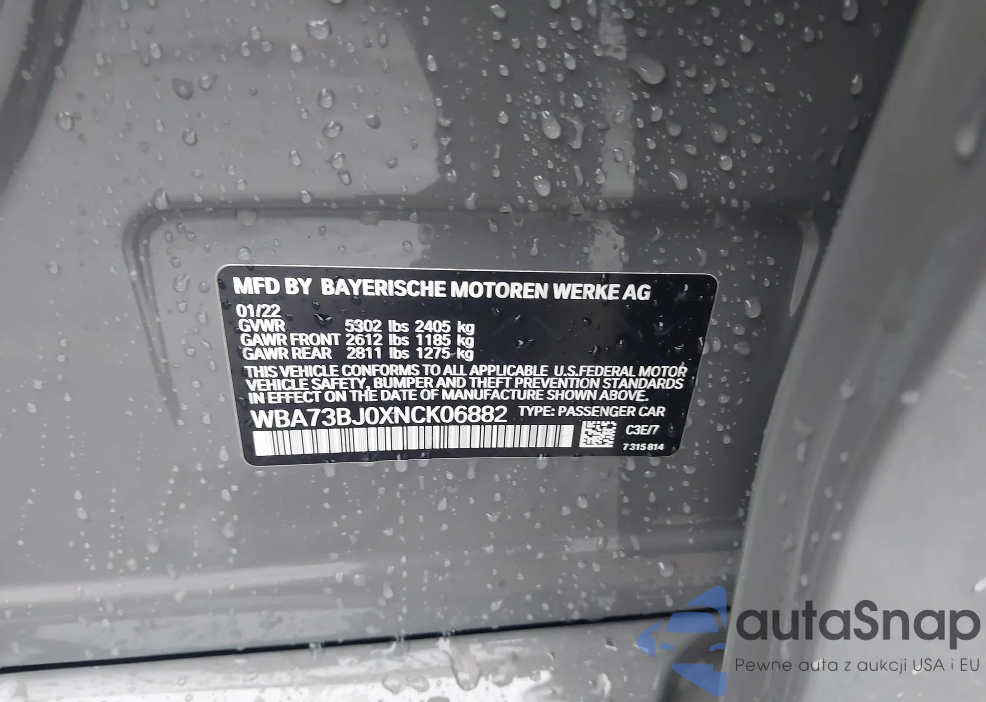 VIN: WBA73BJ0XNCK06882