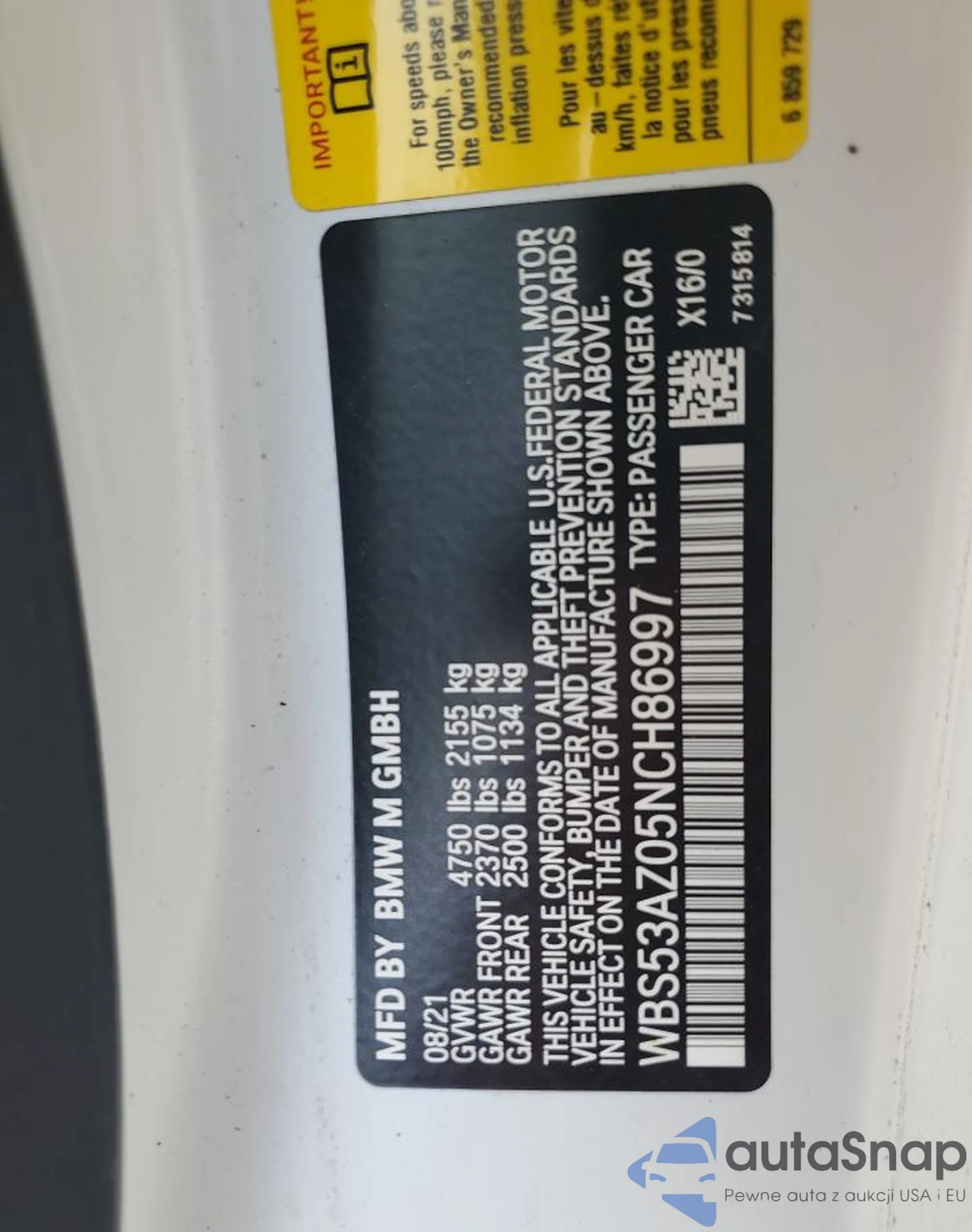 VIN: WBS53AZ05NCH86997