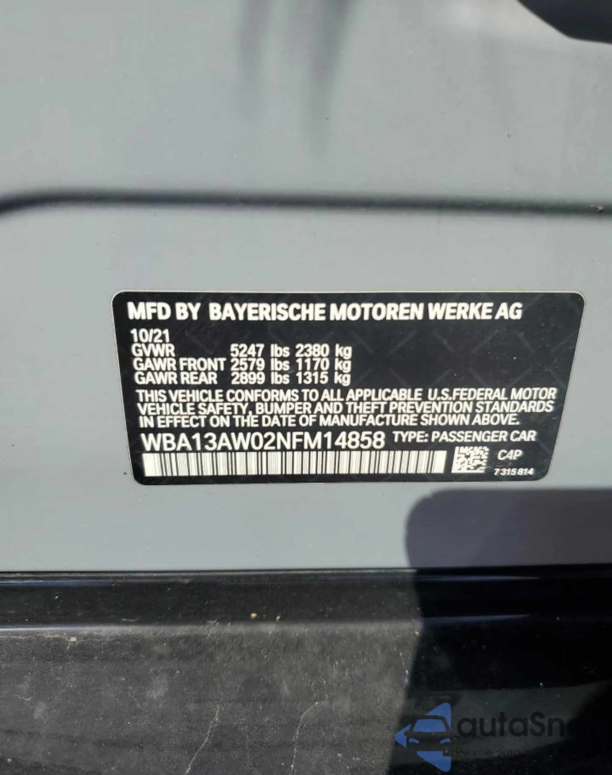 VIN: WBA13AW02NFM14858