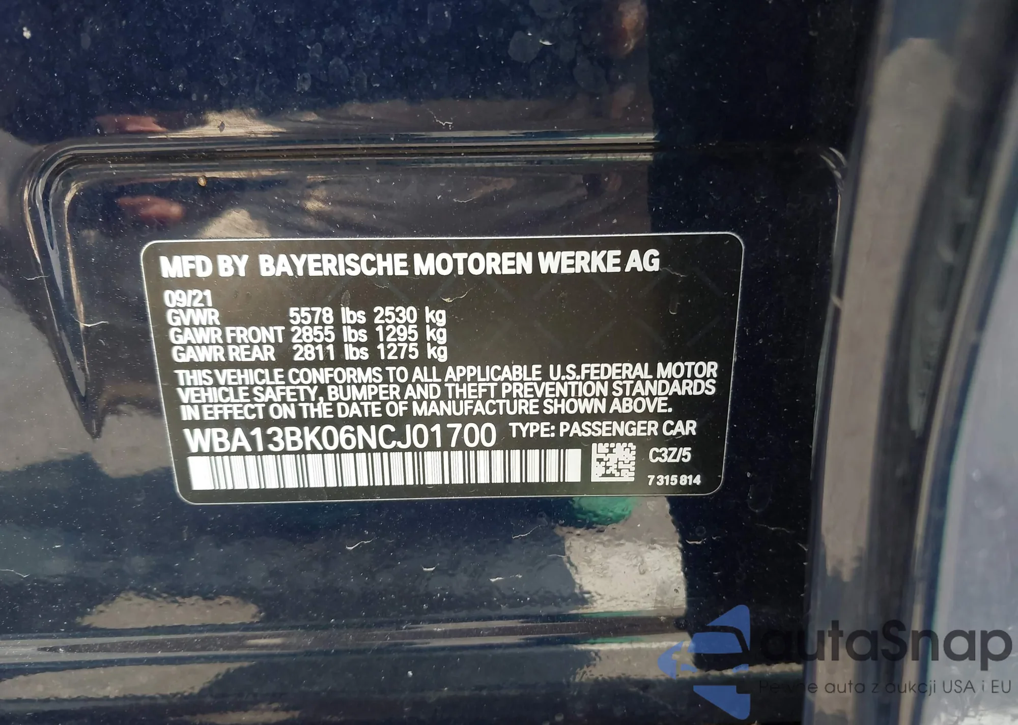 VIN: WBA13BK06NCJ01700
