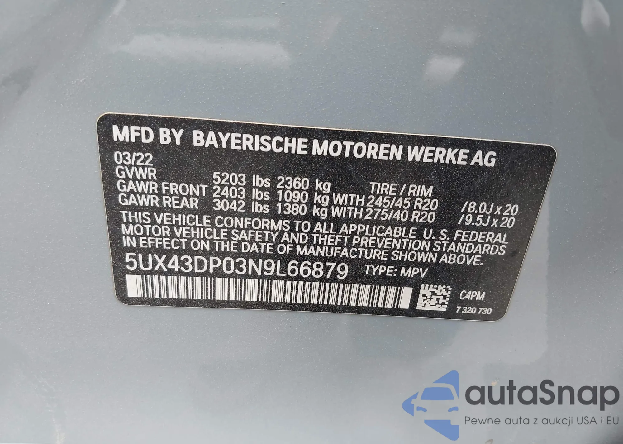 VIN: 5UX43DP03N9L66879