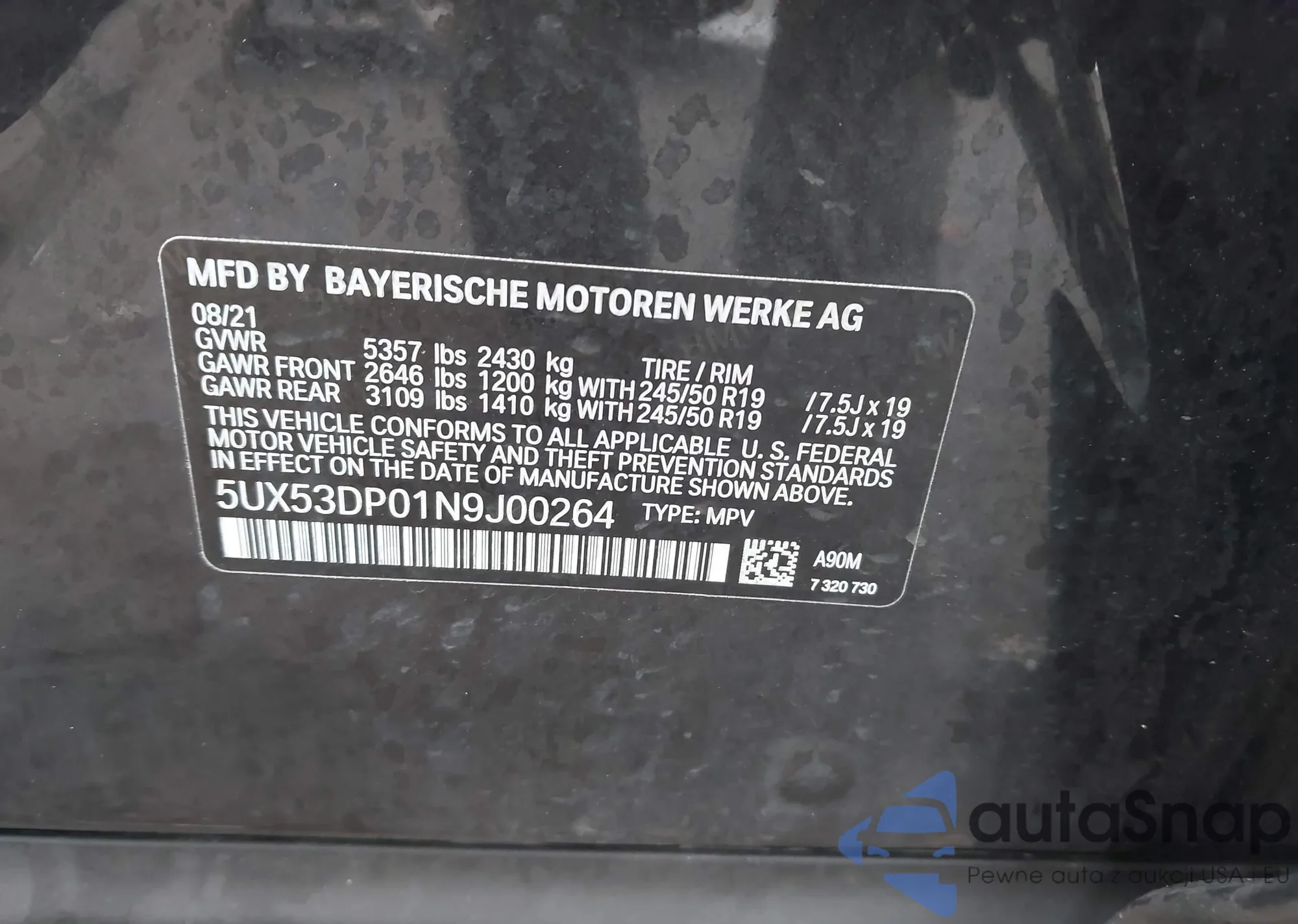 • VIN: 5UX53DP01N9J00264