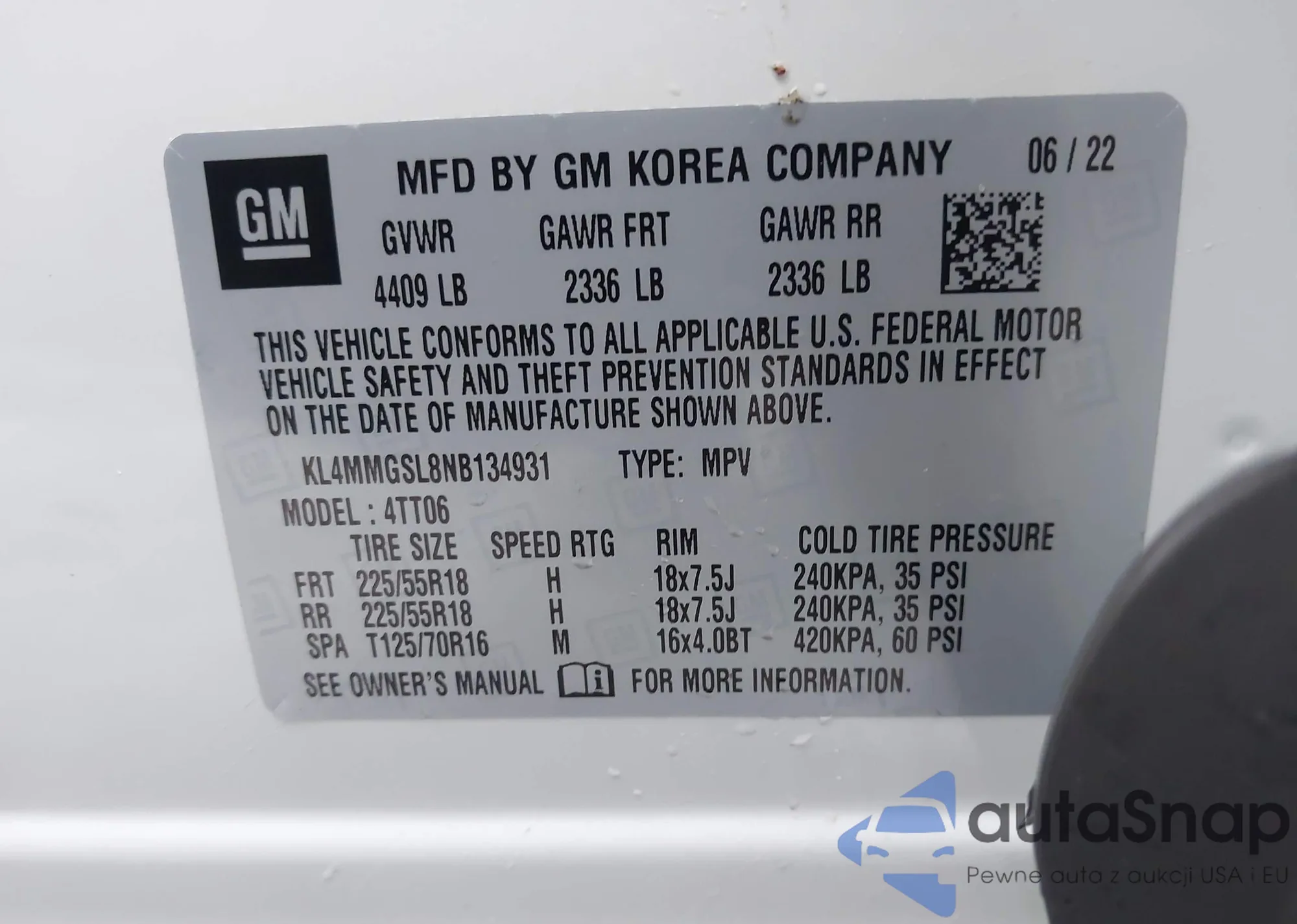 VIN: KL4MMGSL8NB134931
