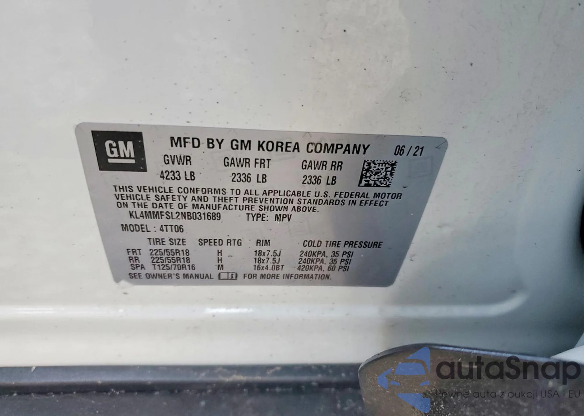 The car Buick Encore GX 2022 (VIN KL4MMFSL2NB031689) is sold by an unverified seller. We recommend checking the Carfax report and confirming registration possibilities before purchase.
