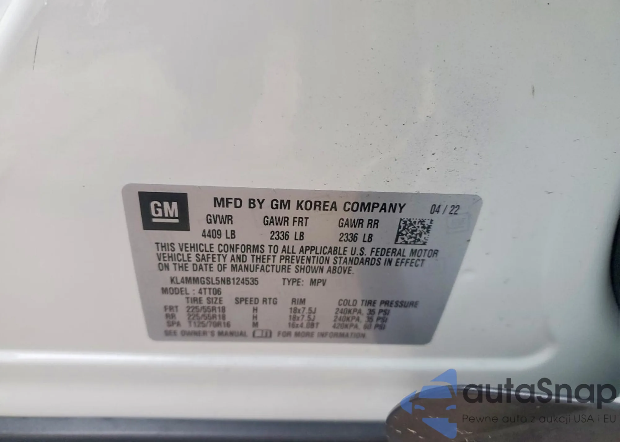 VIN: KL4MMGSL5NB124535