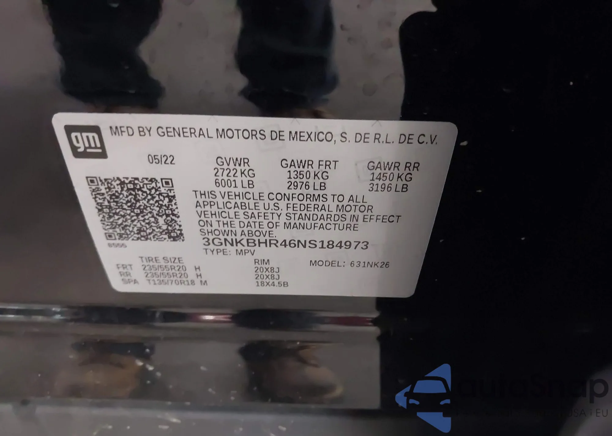 VIN: 3GNKBHR46NS184973