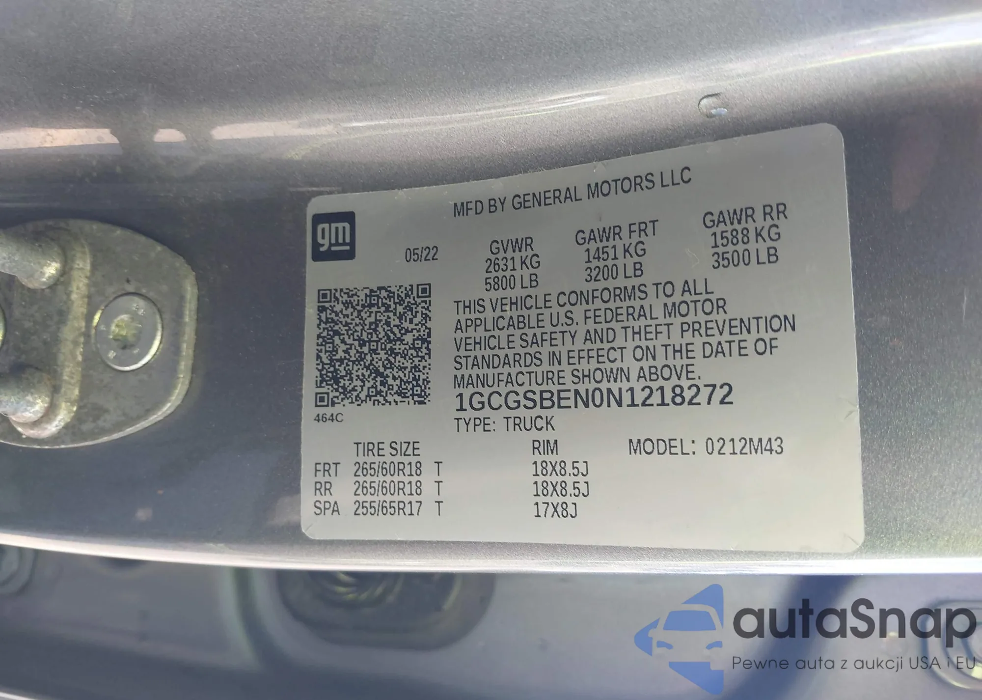 VIN: 1GCGSBEN0N1218272