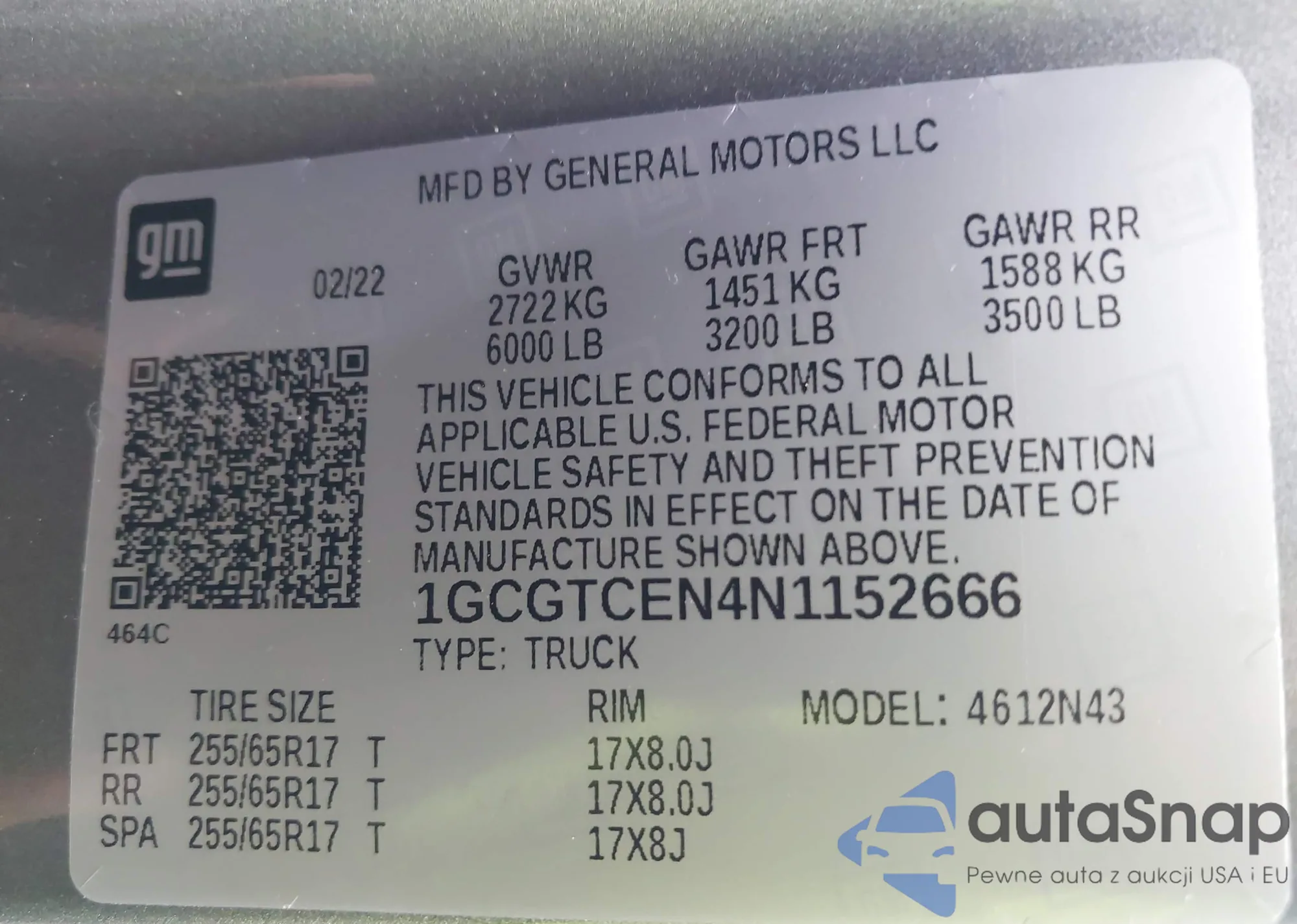 VIN: 1GCGTCEN4N1152666
