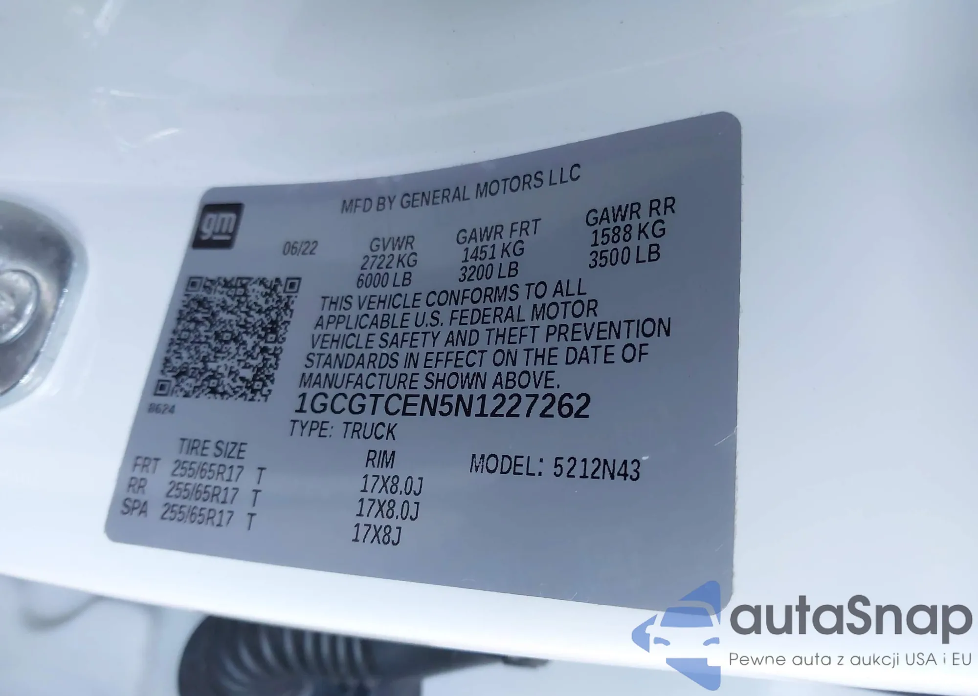 The car Chevrolet Colorado 2022 (VIN 1GCGTCEN5N1227262) is sold by an unverified seller. We recommend checking the Carfax report and confirming registration possibilities before purchase.