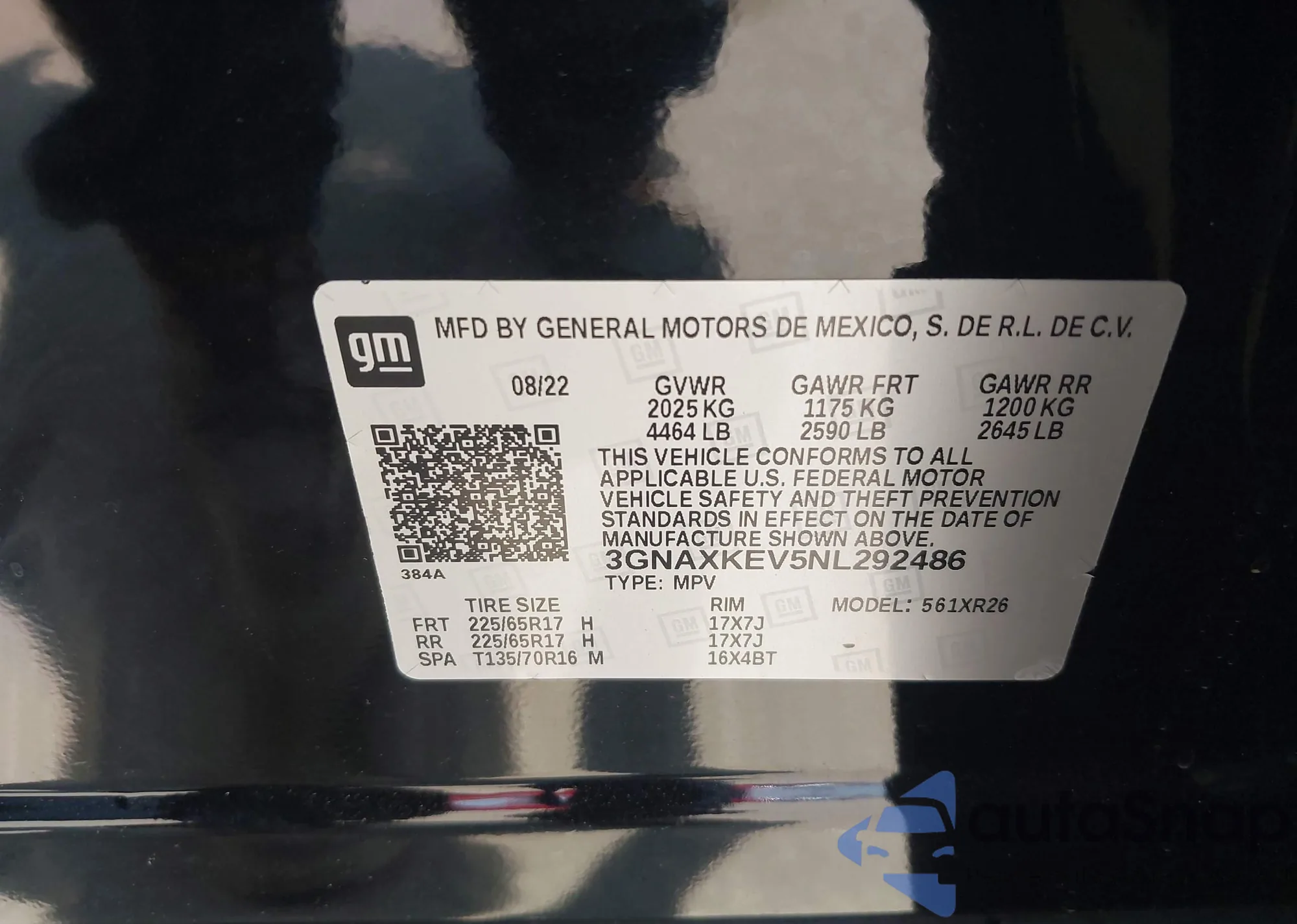 VIN: 3GNAXKEV5NL292486