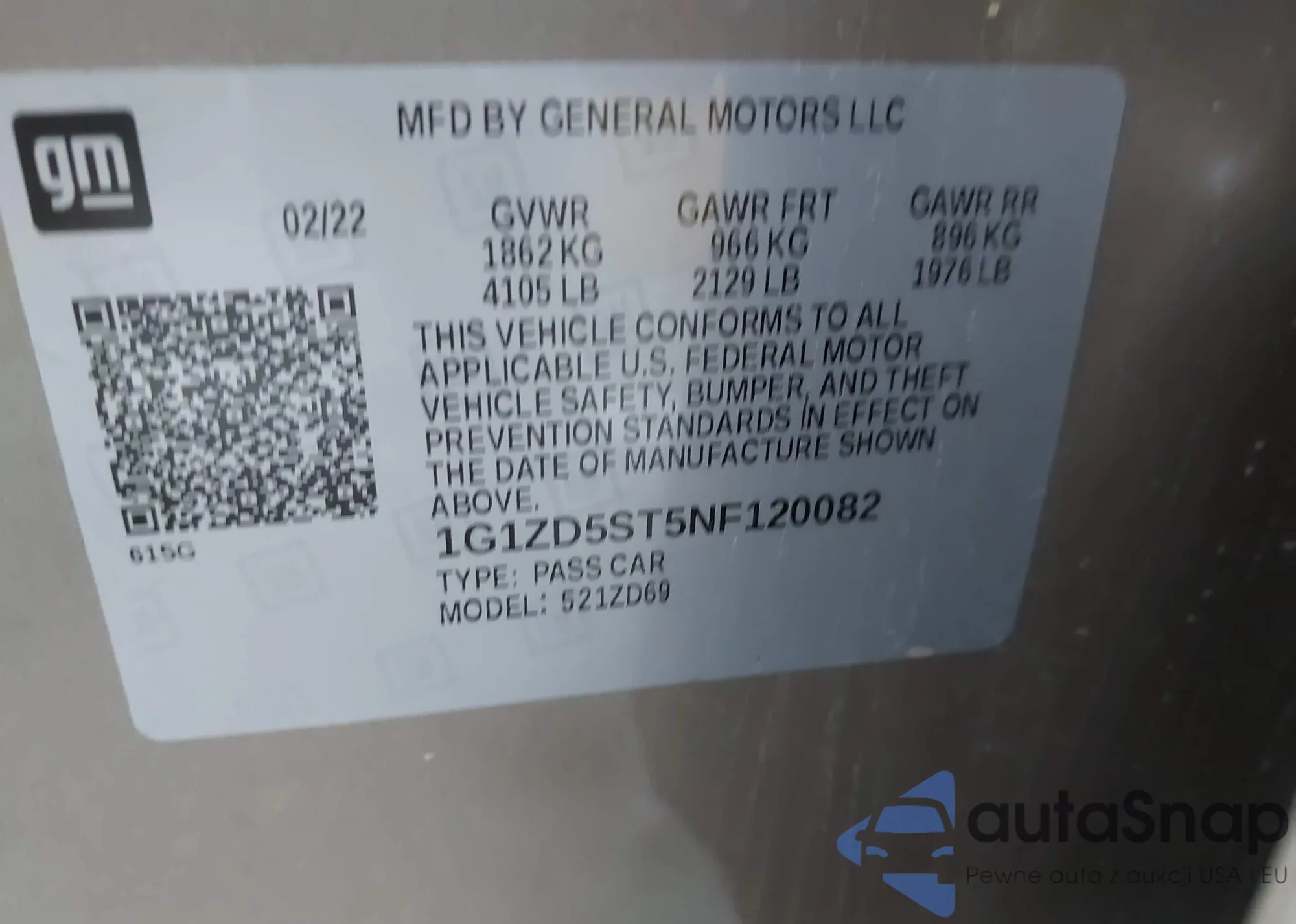 VIN: 1G1ZD5ST5NF120082
