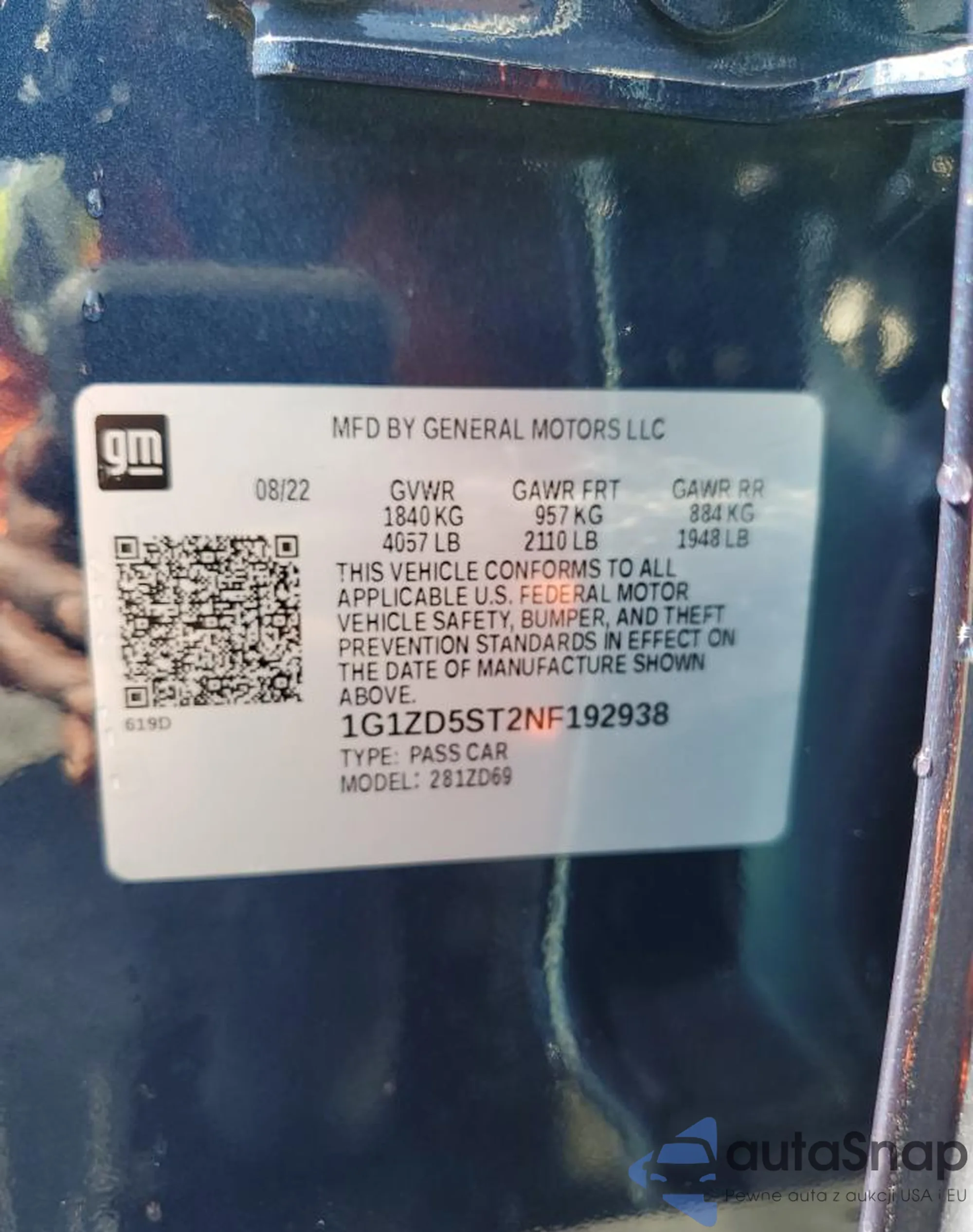 VIN: 1G1ZD5ST2NF192938