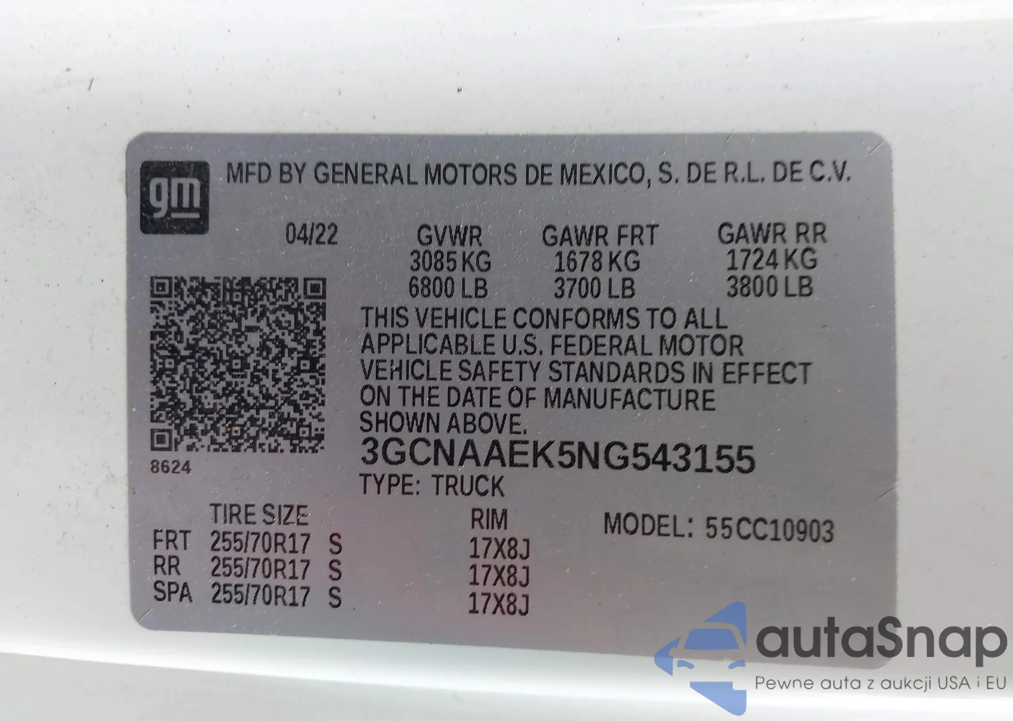 The car Chevrolet Silverado 2022 (VIN 3GCNAAEK5NG543155) has not been auctioned before. The documents are clean, and the mileage matches or is below the market average. Sold by an insurance company – we recommend purchase. Delivery to the port will take approx. 6–8 weeks.