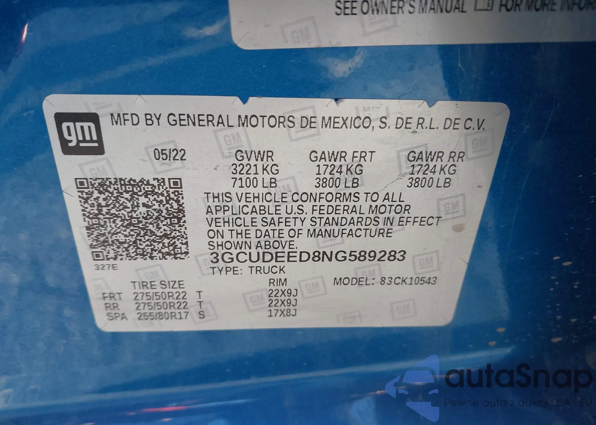 • VIN: 3GCUDEED8NG589283