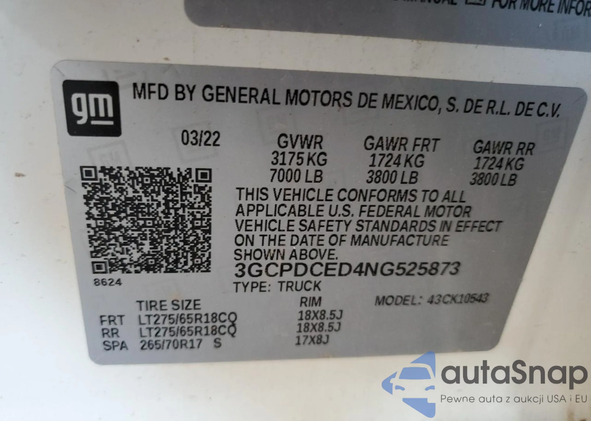 VIN: 3GCPDCED4NG525873