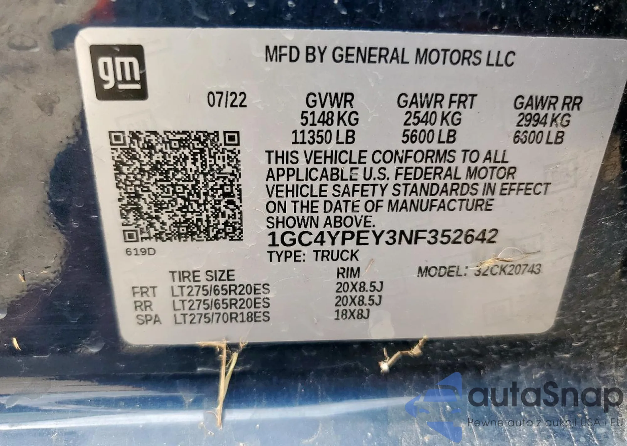 VIN: 1GC4YPEY3NF352642