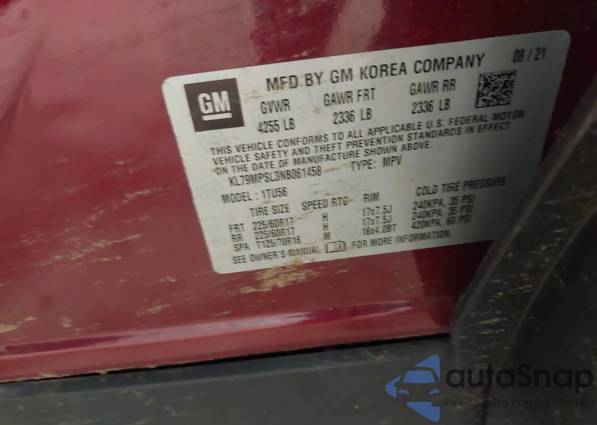 VIN: KL79MPSL3NB061458