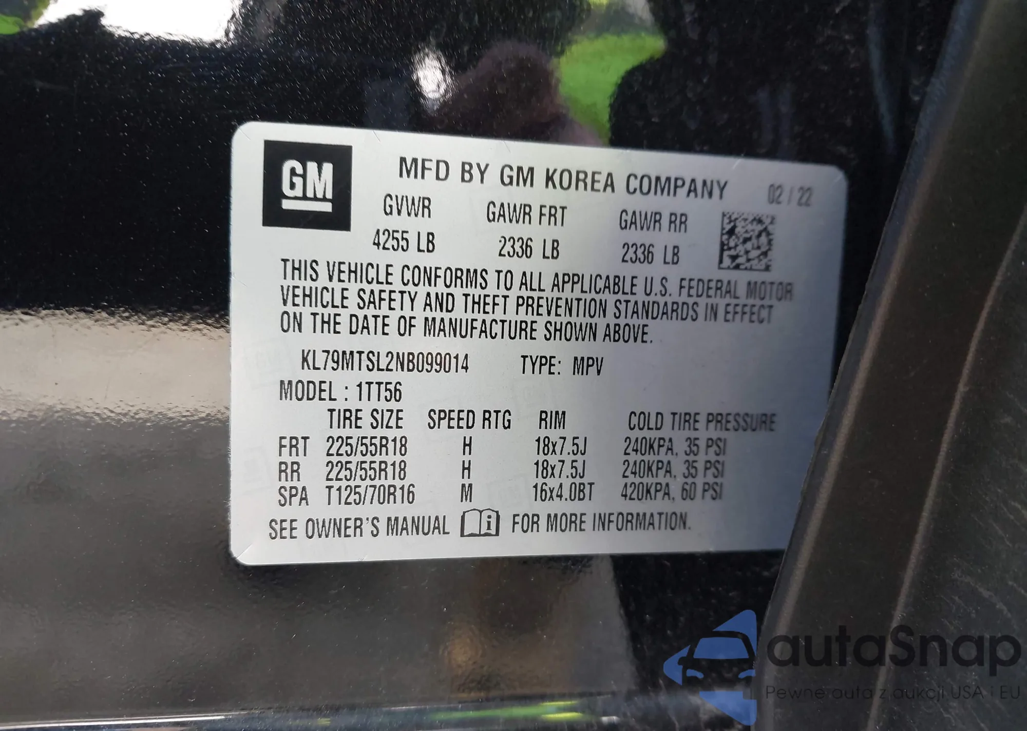 The car Chevrolet TrailBlazer 2022 (VIN KL79MTSL2NB099014) has not been auctioned before. The documents are clean, and the mileage matches or is below the market average. Sold by an insurance company – we recommend purchase. Delivery to the port will take approx. 6–8 weeks.