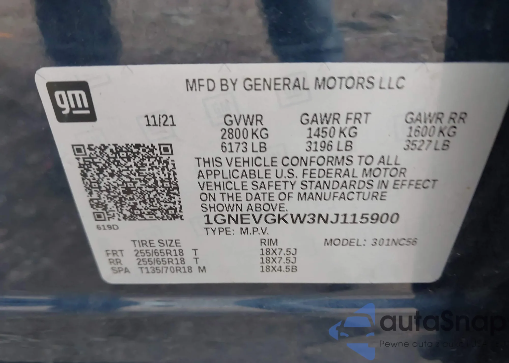 VIN: 1GNEVGKW3NJ115900