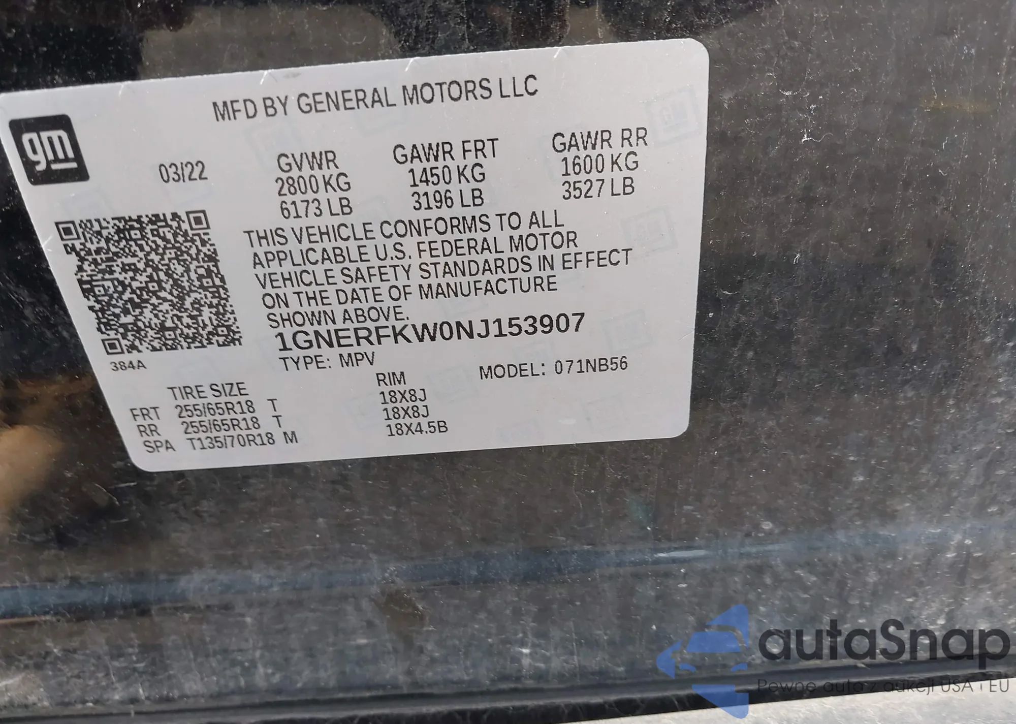 VIN: 1GNERFKW0NJ153907