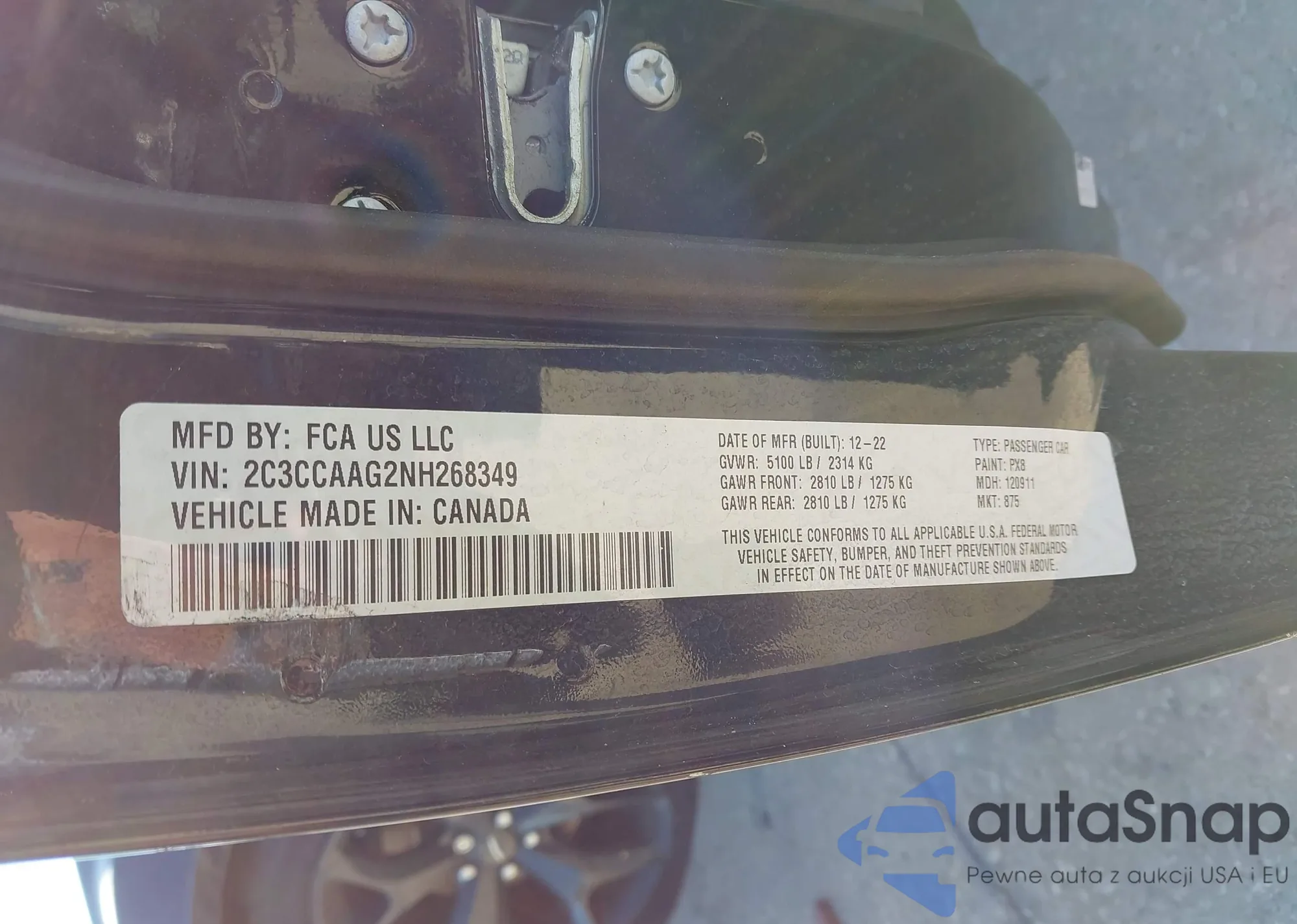 The car Chrysler 300 2022 (VIN 2C3CCAAG2NH268349) is sold by an unverified seller. We recommend checking the Carfax report and confirming registration possibilities before purchase.