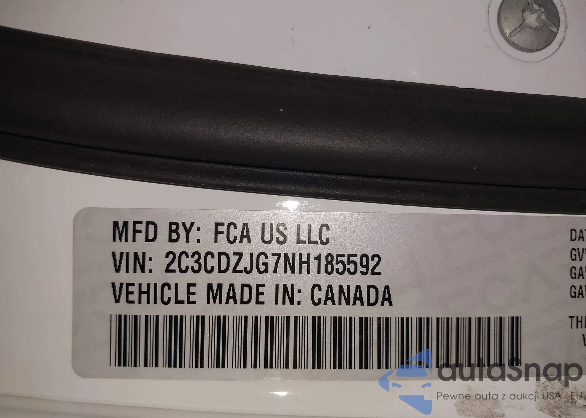 • VIN: 2C3CDZJG7NH185592