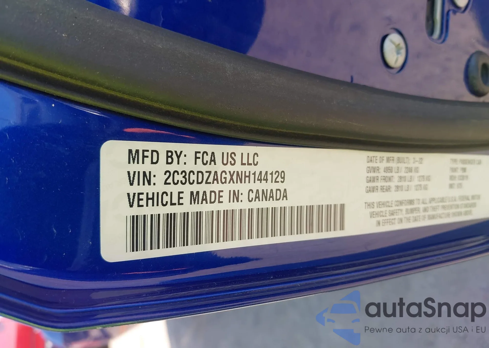 VIN: 2C3CDZAGXNH144129