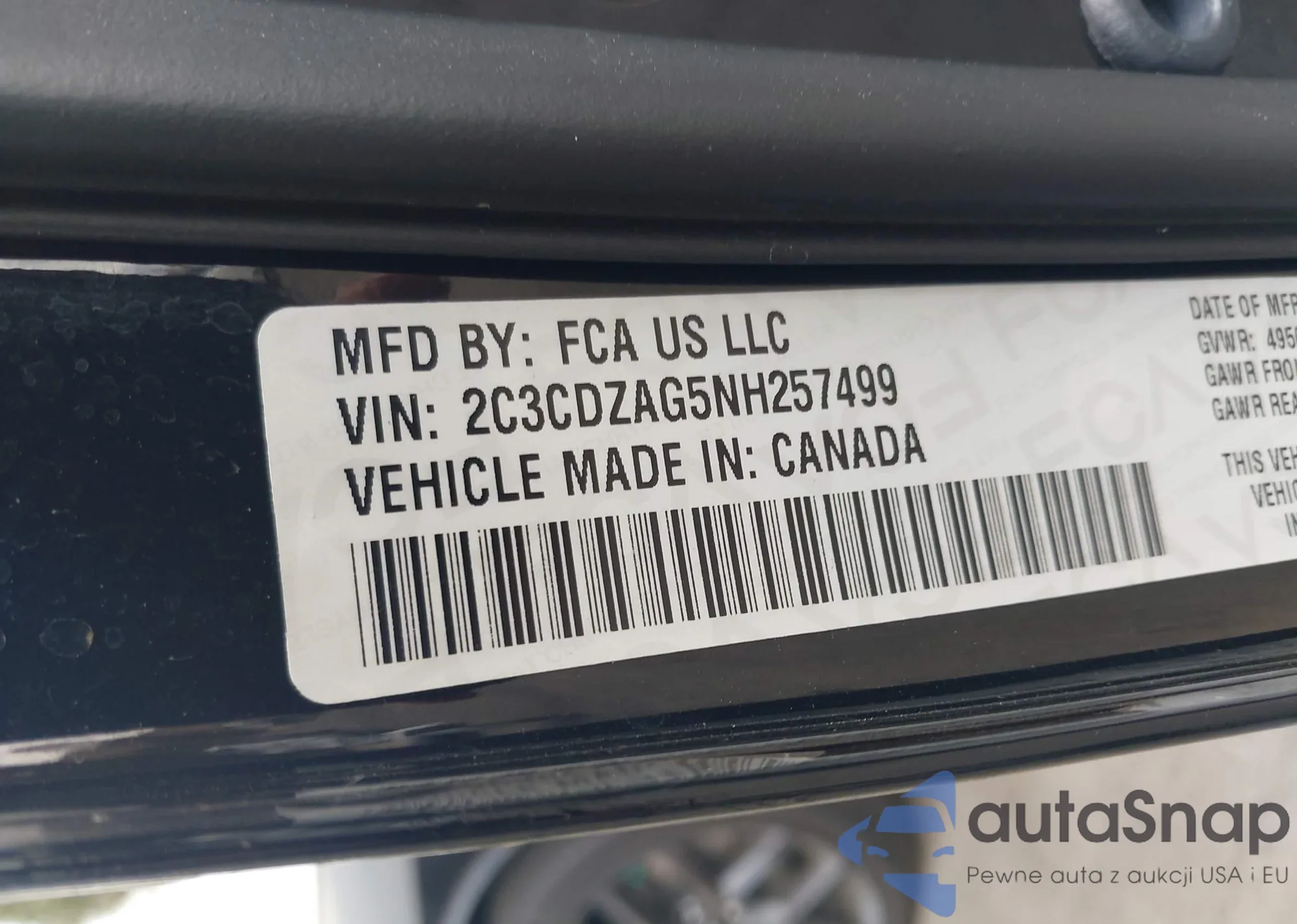 VIN: 2C3CDZAG5NH257499