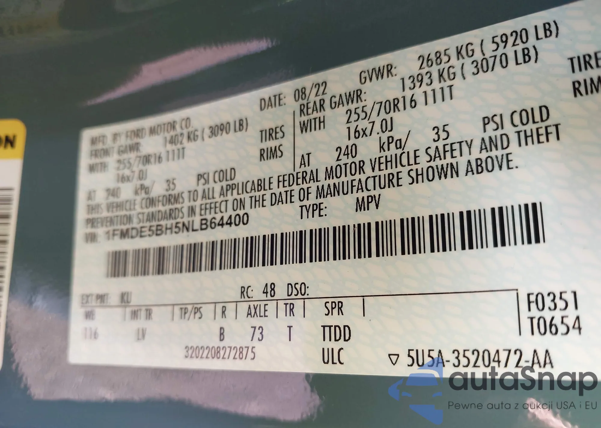VIN: 1FMDE5BH5NLB64400